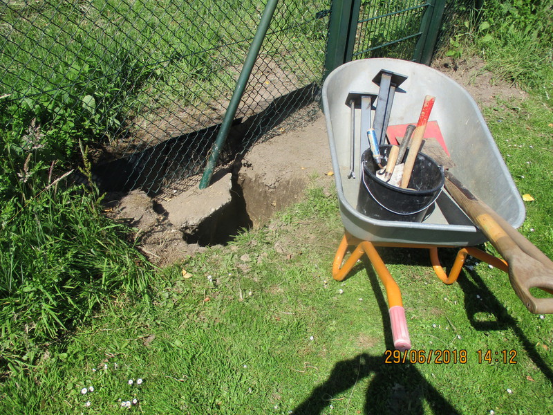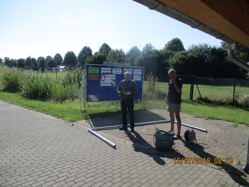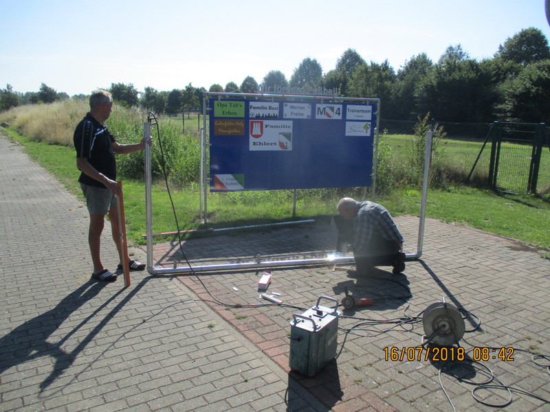 Im Sommer haben wir damit begonnen, die Fundamente für das neue Sportplatzschild auf Höher Mittellinie zu gießen. Mittlerweile ist auch das frisch folierte Schild eingetroffen und am Stahlrohrrahmen angebracht worden.