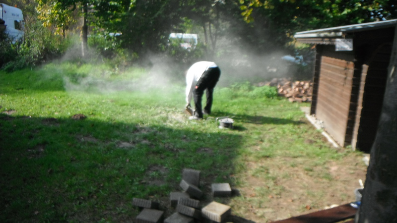 Weil man einmal dabei war, am Vereinsheim zu pflastern, wurde nach Rücksprache mit dem ersten Vorsitzenden des TSV, Christoph Baum abgestimmt, auch gleich die Pflasterfläche vor der Grillhütte hinter dem Sportheim zu erweitern und ebenfalls neu zu pflastern. Diese Maßnahme sollte eigentlich erst in 2015 im Zuge der geplanten Neugestaltung des Außenbereichs hinter dem Sportheim ausgeführt werden. Aber bei der Bestellung der Pflastersteine konnte ein sehr guter Preis ausgehandelt werden, so dass gleich etwas mehr bestellt wurde. Für den TSV sind keine Kosten entstanden. Alle Ausgaben für Baumateriealien wurden durch den Förderverein übernommen.